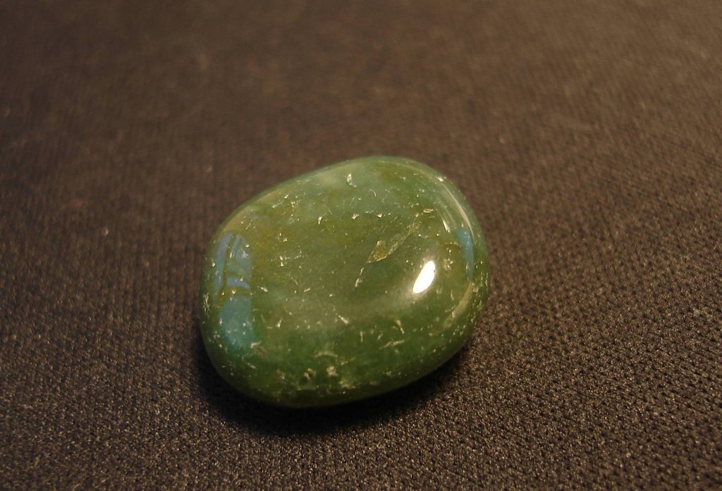 A uniformly colored green stone with no visible sparkle may be dyed quartz rather than genuine aventurine.