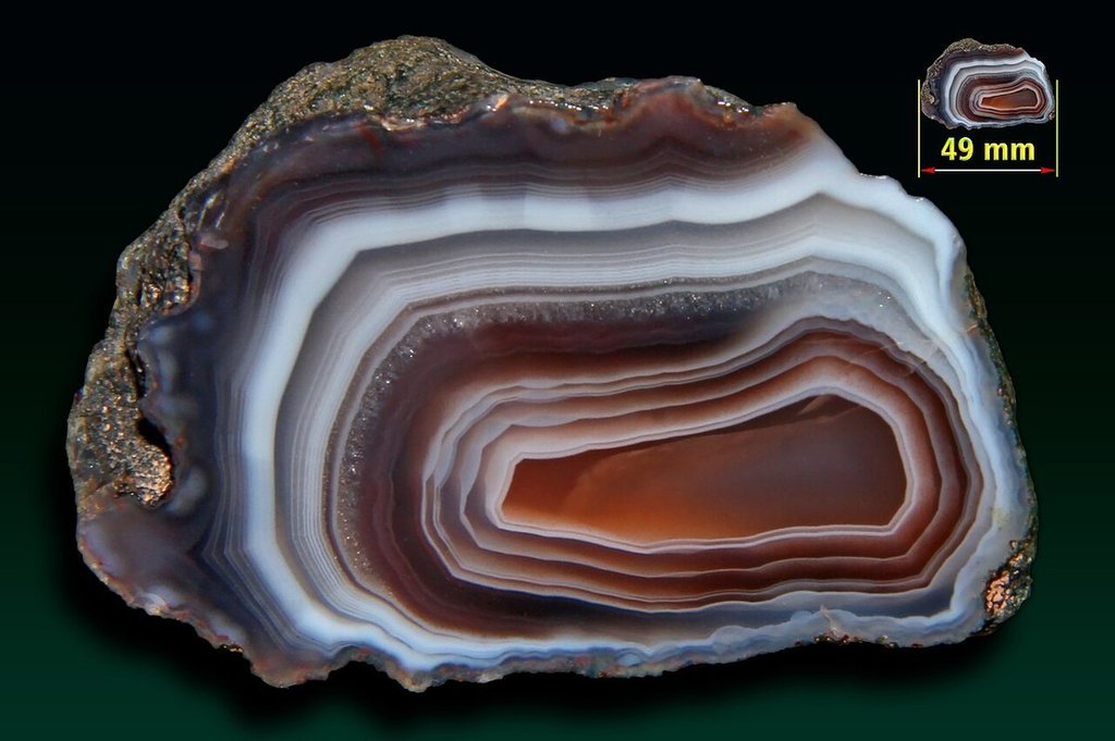 - The fine concentric banding records changing water chemistry over thousands of years of slow silica deposition.