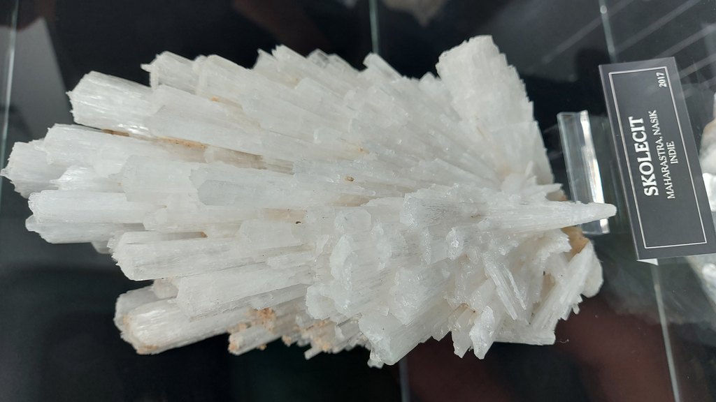 - Pure scolecite needles can be flexible enough to bend slightly before snapping, unusual for a silicate mineral.
